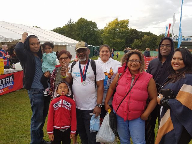 Thank you to Sandy and everyone else donating to the Alzheimer’s Society cause and cheering me on as I staggered in after the Thames Path Challenge walk. I was really on my last legs at the end of the challenge. I started off strong and the first 14 km was fine and I was going at a good pace. I pushed myself during the second quarter, jogging as well as walking, until tiredness and what felt like a strained muscle near my groin forced me to slow down. I enjoyed the rainfall as I came in to the second rest stop near the halfway point. During the third quarter my pace had slowed to a comfortable stroll and at the third rest point I was beginning to feel very stiff and did not dare rest long. The last quarter was quite difficult. The distance completed was signposted at every kilometer and I was counting down the distance I still had to go. I calculated that I was walking at about 1 km per 12 minutes. As I got to the finish completely drained Sandy, Lisa, Dane, Orin, Anita, Maricia, Zaharah and Xavier were waiting and cheered me in.