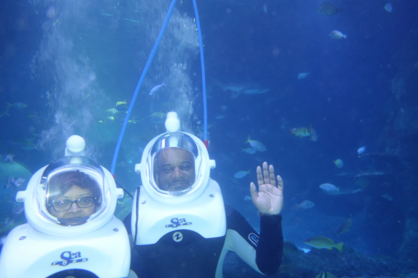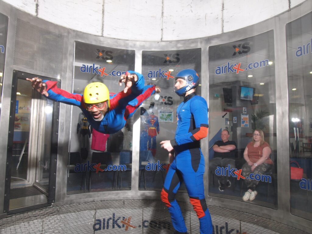During our short stay in Manchester Sandy and I went underwater at Sealife and I was carried aloft on columns of air at Airkix. We saw two plays, Harold Pinter’s ‘The Birthday Present’, and Shakespeare’s ‘King Lear’. We enjoyed seeing the very impressive Trafford Centre and travelling on the tram network.